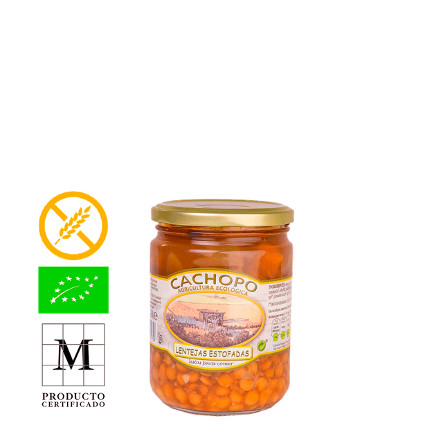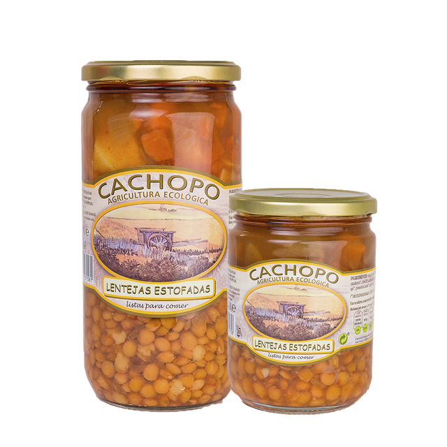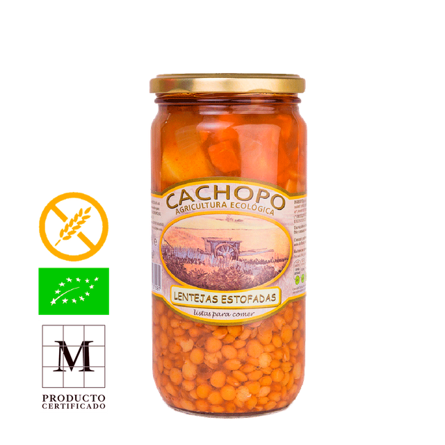 Lentejas Estofadas de cultivo ecológico. Tanto por su cultivo y su elaboración casera, tiene a su alcance un rico y sano plato donde degustará todo el sabor de la lenteja estofada. Una conserva preparada para calentar y servir. Un plato indispensable para dietas vegetarianas elaborado con nuestras mejores materias primas de cultivo ecológico.